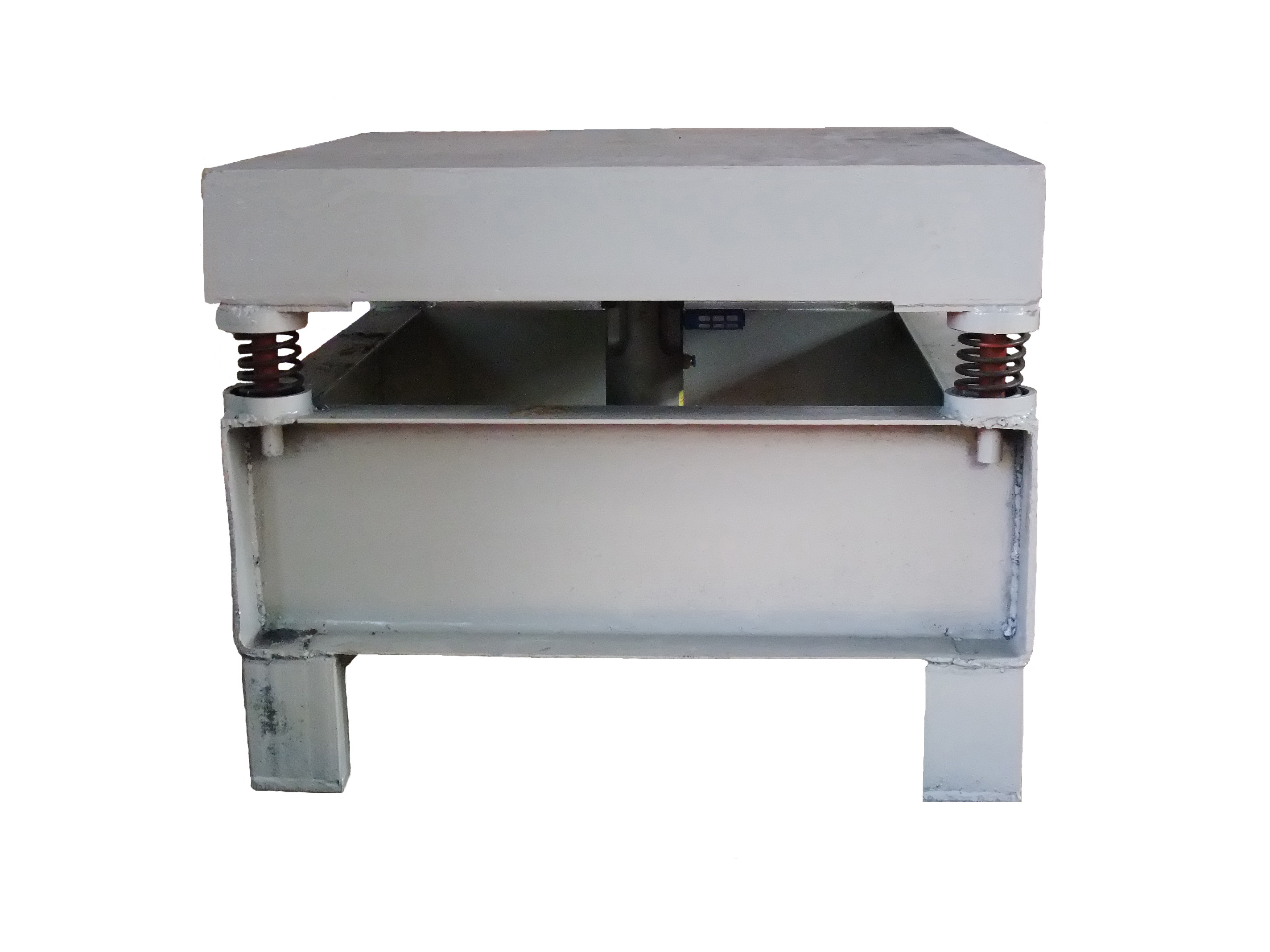 1、設(shè)備主體由12mm鋼板、槽鋼及工字鋼焊接而成,尺寸為1m*2m。采用提高加強(qiáng)筋受力的方式,使設(shè)備承重力達(dá)到1T以上,并確保設(shè)備在高負(fù)載、高頻率的振動(dòng)下不變形不開裂。